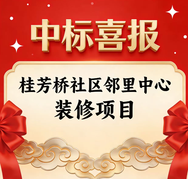 近日,我司传来喜讯:凭借深耕行业的工程建设实践积淀与民生项目服务经验,成功中标由杭州市临平区人民政府临平街道办事处组织招标的桂芳桥社区邻里中心装修项目,中标时间为2025年9月8日,中标金额1545328.00元,项目建设地点位于浙江省杭州市临平区临平街道。